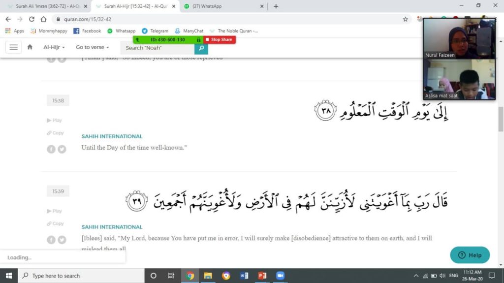 Ini Antara Kelas Mengaji Online dan Pelajar Kami